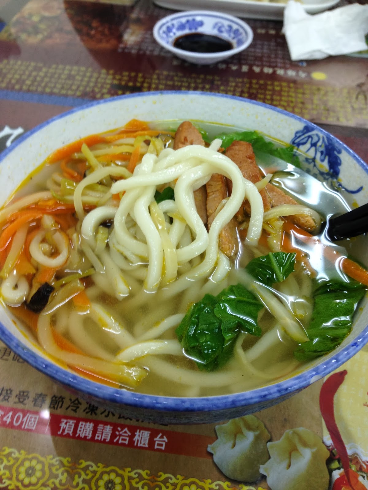 湯頭其實還蠻普通,不過這個麵真的相當Q彈有嚼勁!很想打包回家做麻醬涼麵,哈哈。
